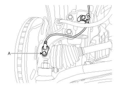 1. Remove the front wheel speed sensor mounting bolt (A).