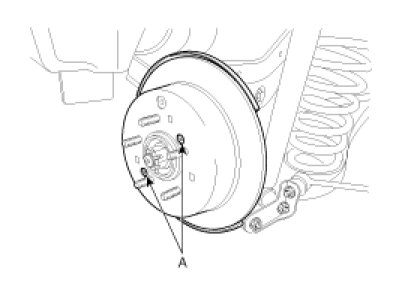 9. Remove the parking brake cable fixing clip(A) and bolts.