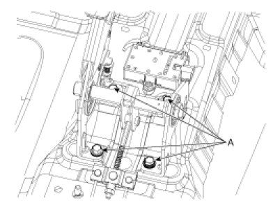 5. Remove the parking brake lever assembly after removing the 4 bolts(A) as shown below.