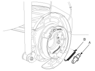 7. Remove the parking brake cable (B) from the brake shoe (A).