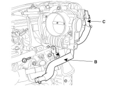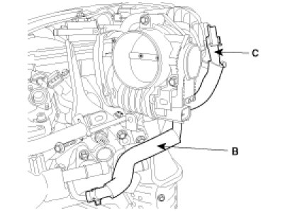 8. Connect the PCV hose(C).