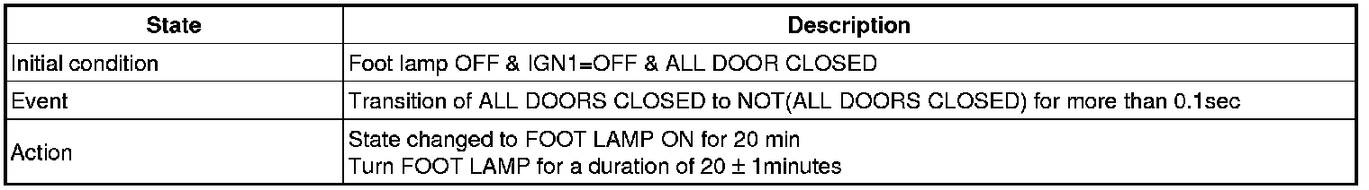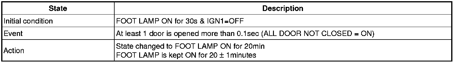 (3) Transitions from Foot lamp ON for 20min state: