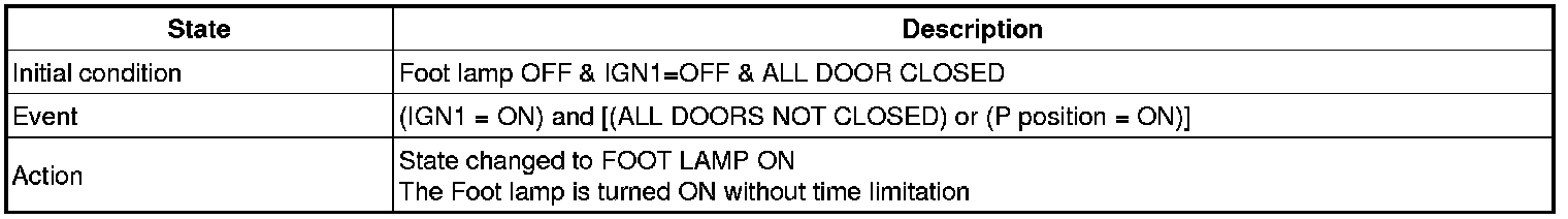 (1) Transitions from Foot lamp OFF state: