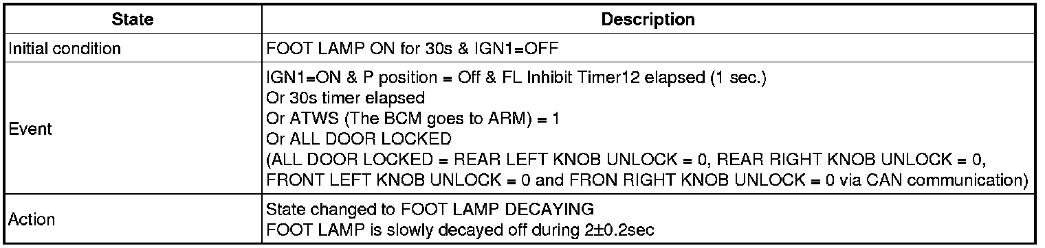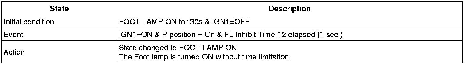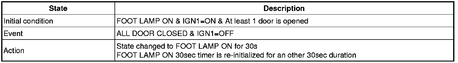 (2) Transitions from Foot lamp ON for 30s state: