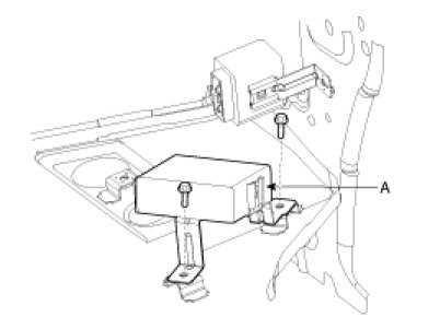 2. Loosen the mounting bolts and remove the rear parking assist system control module unit (A) from the quarter panel.