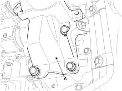 2. Remove the front roll stopper under mounting (B) bolts and disconnect the electronic controlled mounting solenoid connector (A).
