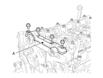 When installing the CVVT assembly bolt, fix the camshaft by wrench at position A.