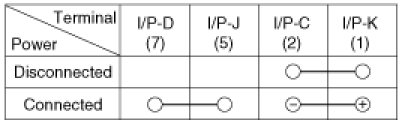 1. There should be continuity between the No.5 terminal in the I/P-J and No.7 terminal in the I/P-K when power and ground are connected to the No.2 terminal in the I/P-C and No.1 terminal in the I/P-K.