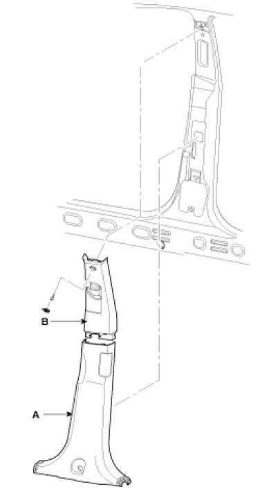 3. Remove the center upper pillar trim (B).