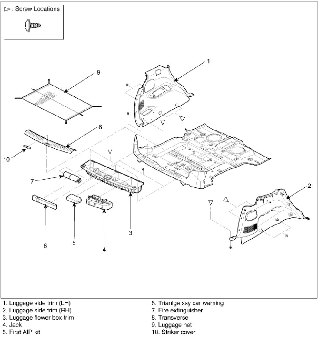 3. After loosening the mounting screws, then remove the luggage side trim.
