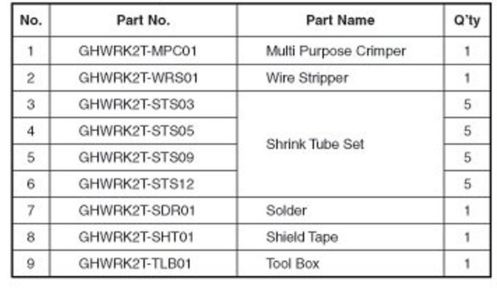 2. Use of in-line solder (GHWRK2T-SDR01) and Shrink tube set (GHWRK2T-STS03, 05, 09, 12)