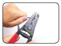 2. Insert each wire into the opposite ends of the in-line solder and crimp using a wire stripper.