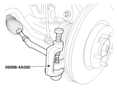 1. Disconnect the tie rod end from the knuckle with the special tool (09568-4A000).