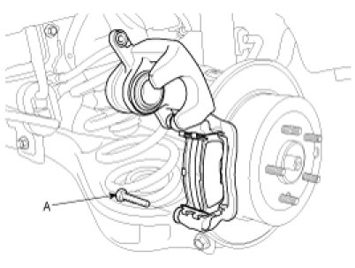 1. Loosen the guide rod bolt (A) and pivot the caliper up out of the way.