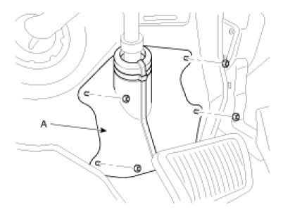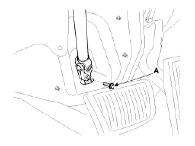 6. Loosen the bolt (A) and then disconnect the universal joint assembly from the pinion of the steering gear box.