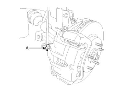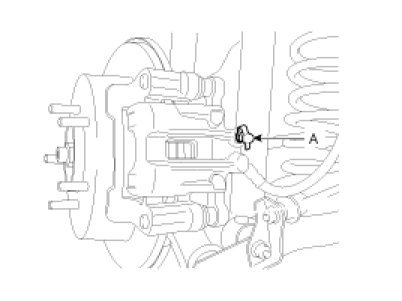 3. Loosen the right-rear brake bleed screw (A) to allow air to escape from the system. Then tighten the bleed screw securely.
