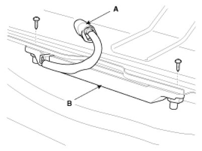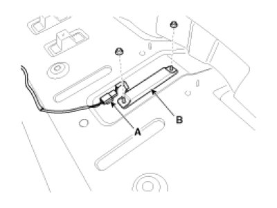 3. After disconnecting the smart key unit connector (A), loosen the smart key unit mounting bolts, and remove the smart key unit (B).
