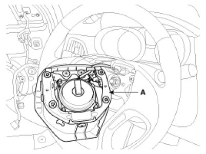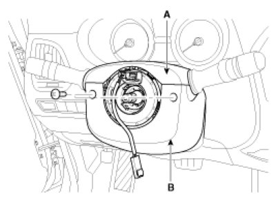 4. Disconnect the connector(B) & lock nut(A) and then remove the steering wheel from the steering column shaft.