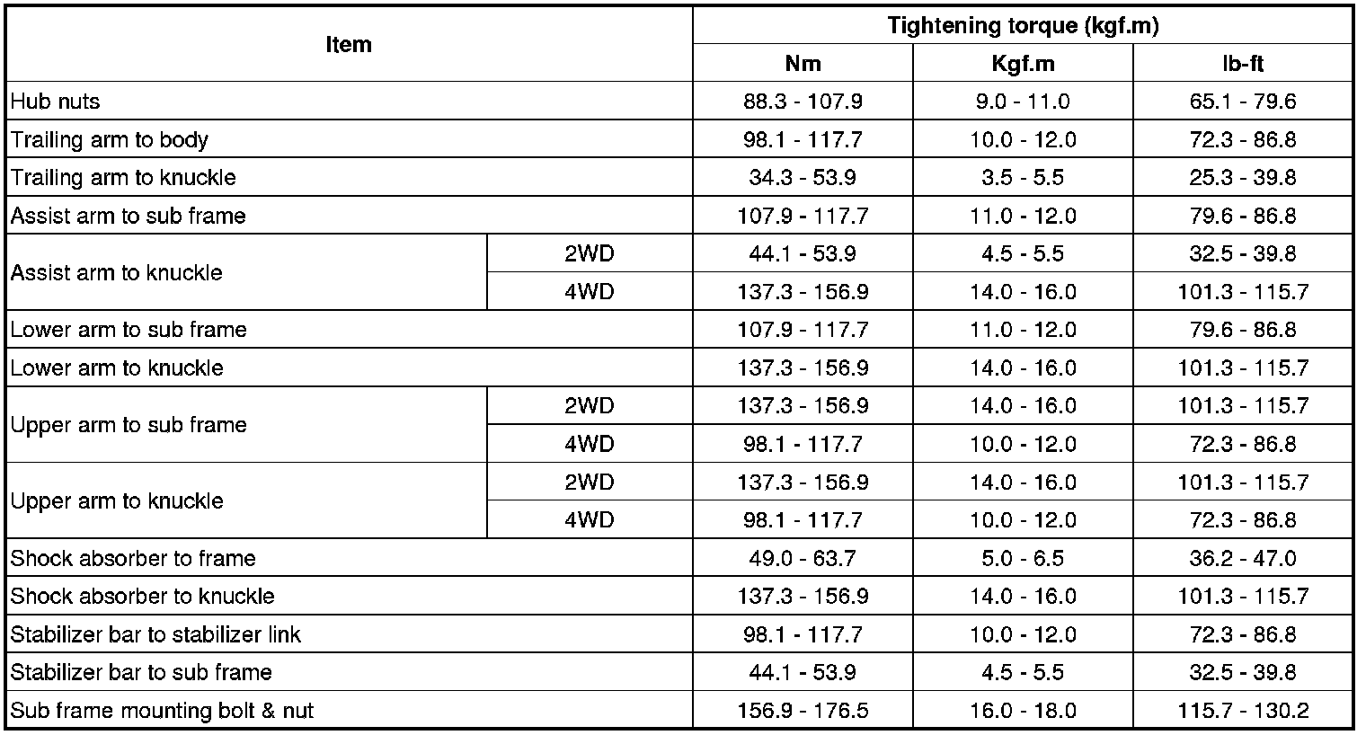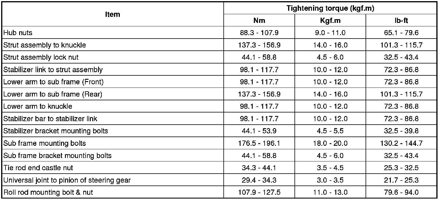 Suspension: Specifications