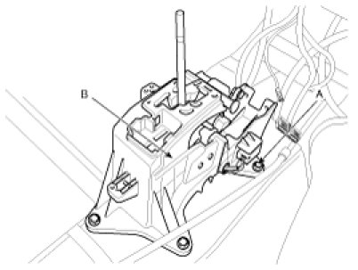 5. Remove the shift lever assembly (B) by removing the bolts (A-4ea).