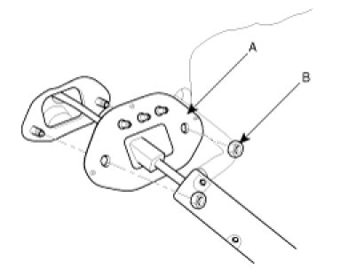 6. Remove the shift cable assembly in the vehicle after removing the nuts (B) and the retainer (A).
