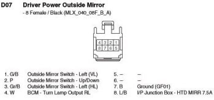 D07 Driver Power Outside Mirror: