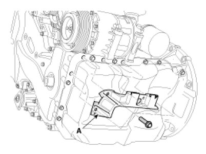 7. Disconnect the ground cable and then remove the engine mounting bracket (A).
