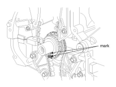 Before removing the timing chain, mark the timing chain with an identification based on the location of the sprocket because the identification mark on the chain for TDC (Top Dead Center) can be erased.