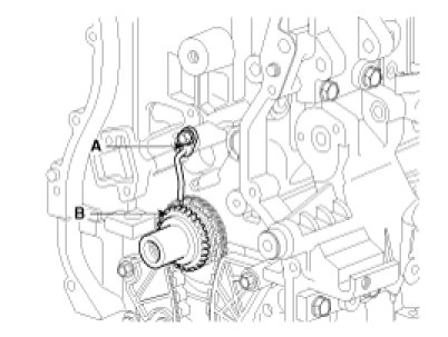 To install the timing chain with no slack between each shaft (cam, crank), follow the below procedure.Crankshaft sprocket (A) -> Timing chain guide (B) -> Intake CVVT assembly (C) -> Exhaust CVVT assembly (D).