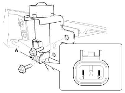 1. Disconnect the connector (A) and bolt from the hood switch.