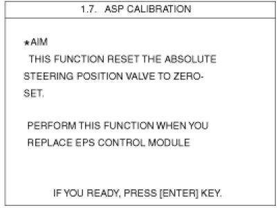 Caution when ASP (Absolute Steering Position) calibration or EPS type recognition