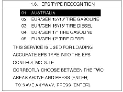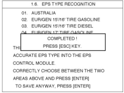 6. When the EPS type recognition is completed, the massage will be displayed on the screen as follows.