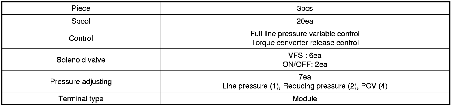 Valve Body: Specifications