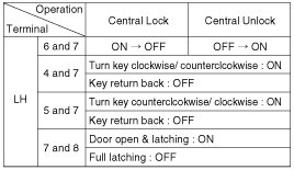 3. Check actuator operation by connecting power and ground according to the table. To prevent damage to the actuator, apply battery voltage only momentarily.