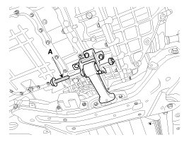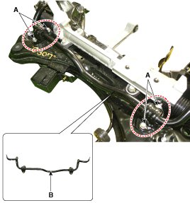 11. Loosen the bolt (A-4ea) and then remove the stabilizer bar (B) from the sub frame.