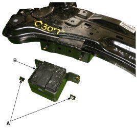 14. Loosen the nut (A-2ea) and then remove the sub frame damper (B).