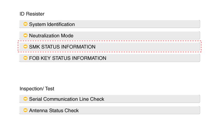 It will be able to diagnose defects of SMART KEY system with GDS quickly. GDS can operates actuator forcefully, input/output value monitoring and self diagnosis.