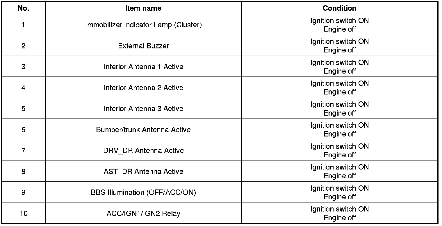 3. SMART KEY unit Output problem : antenna and switch output diagnosis