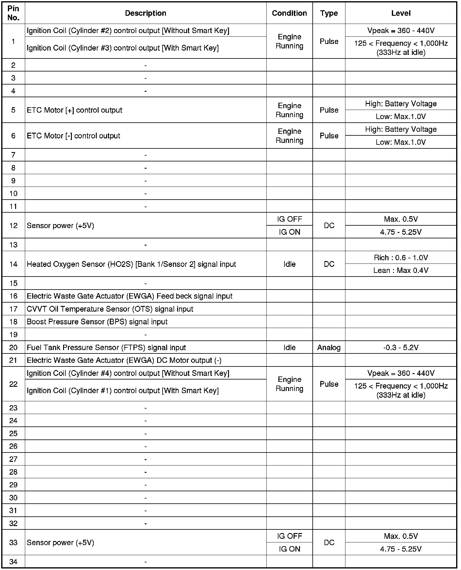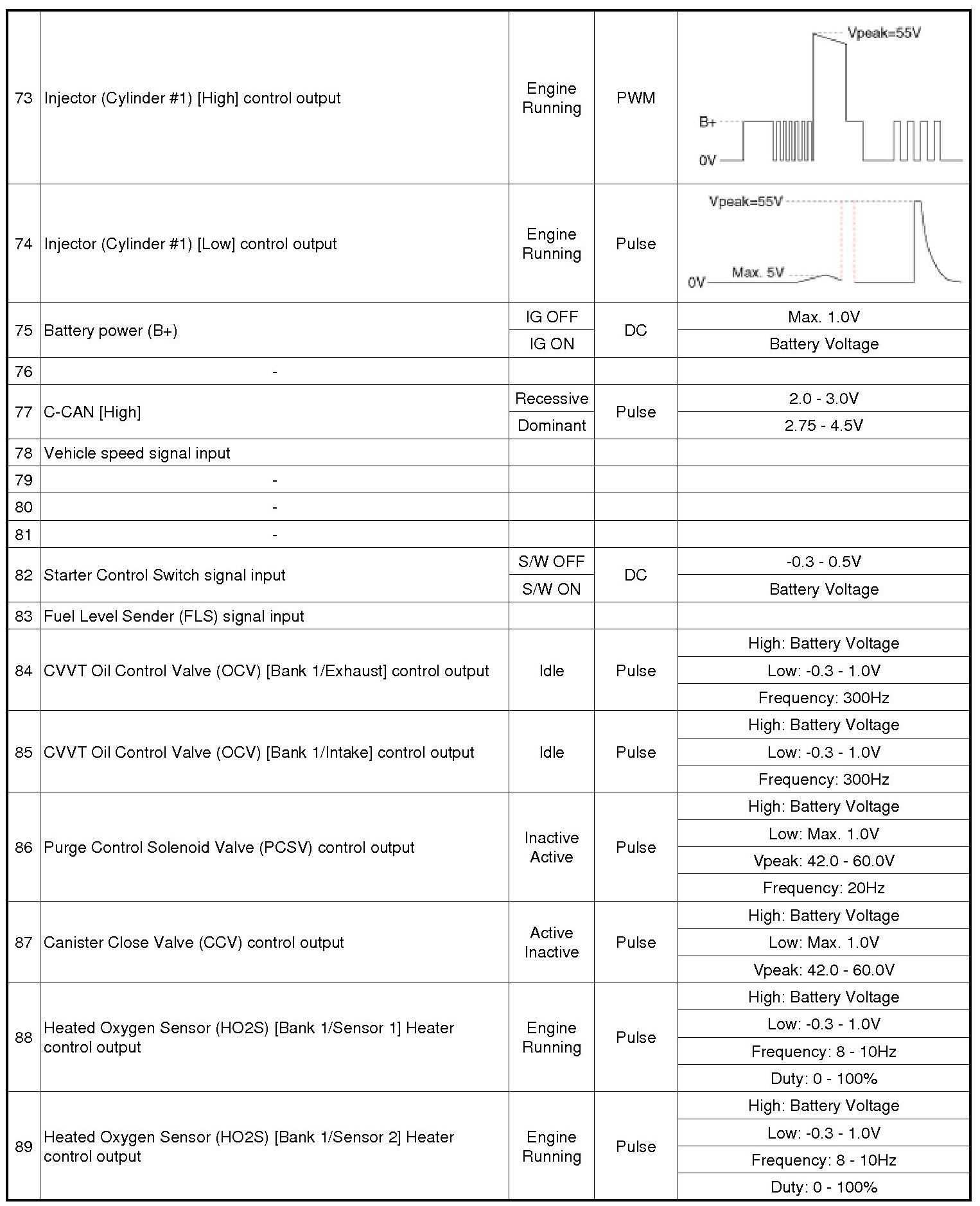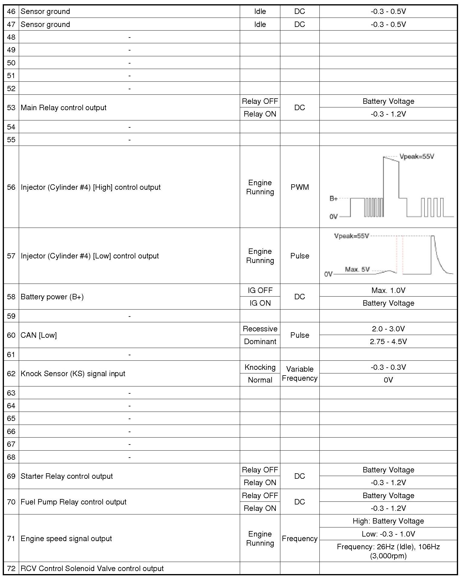 ECM Terminal And Input/Output signal