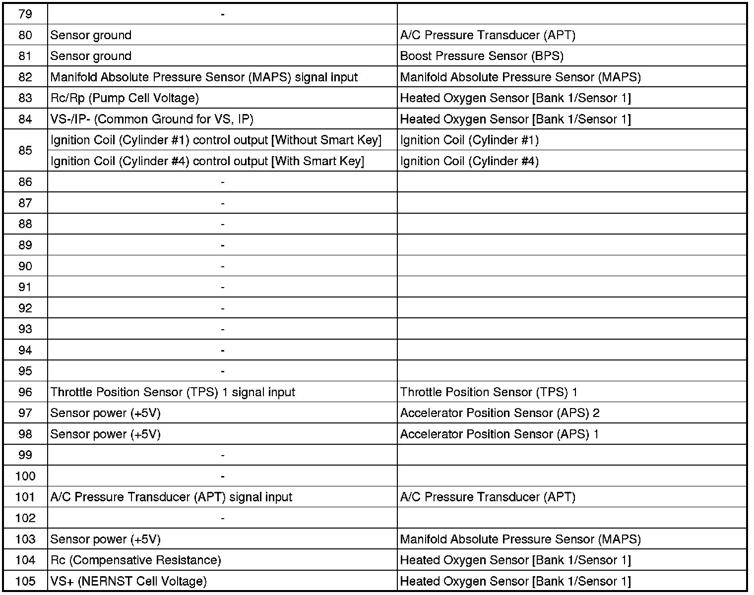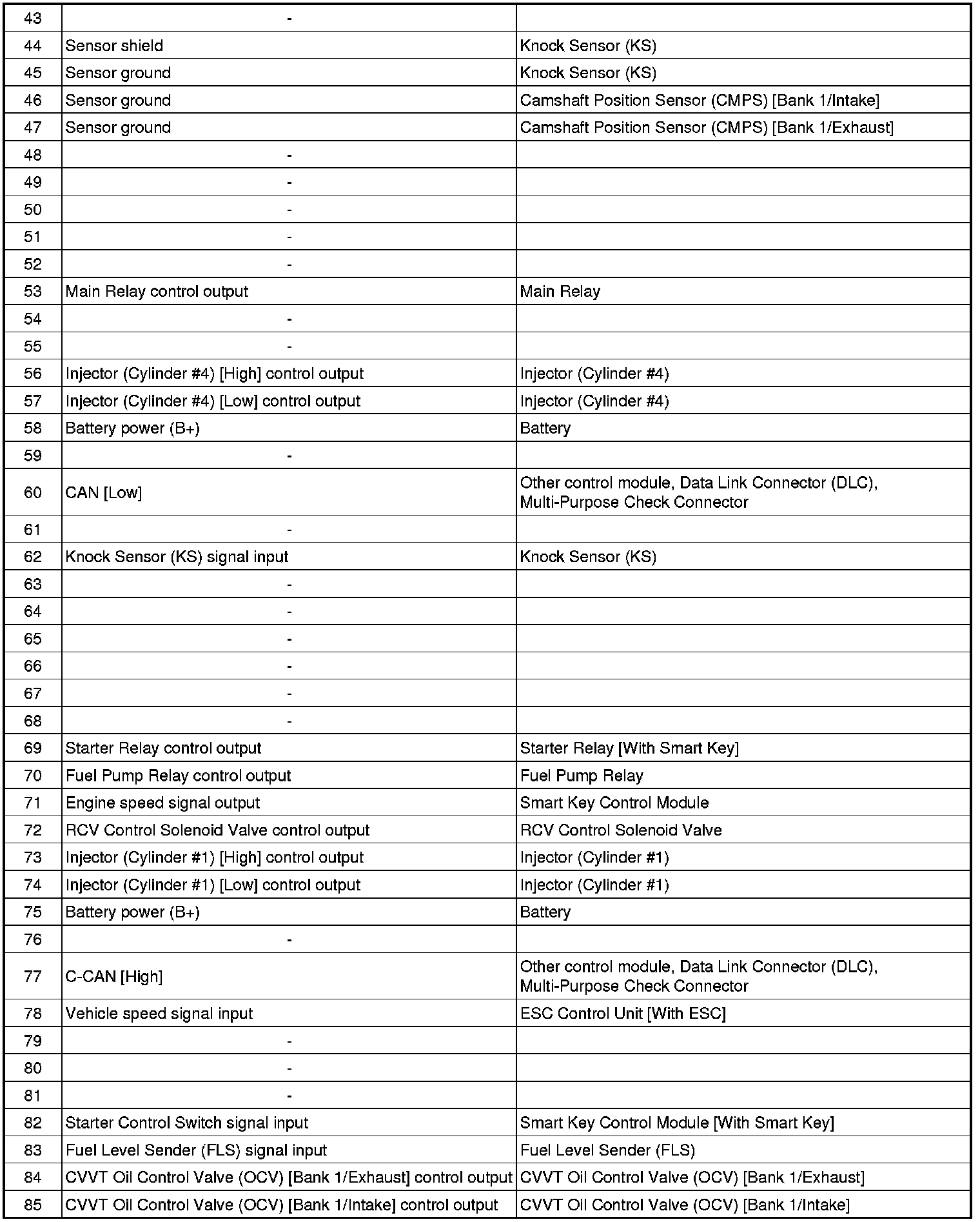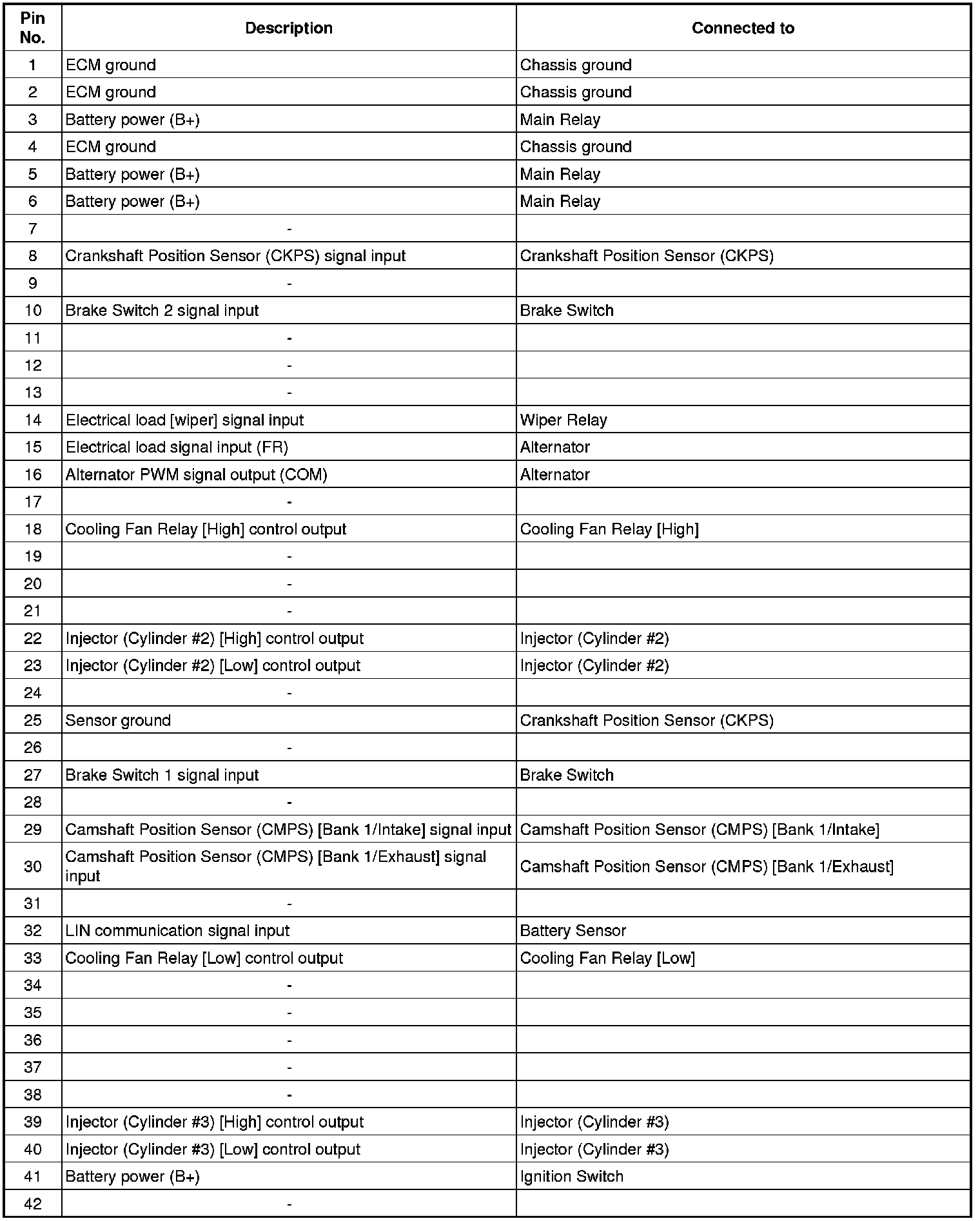 ECM Terminal And Input/Output signal