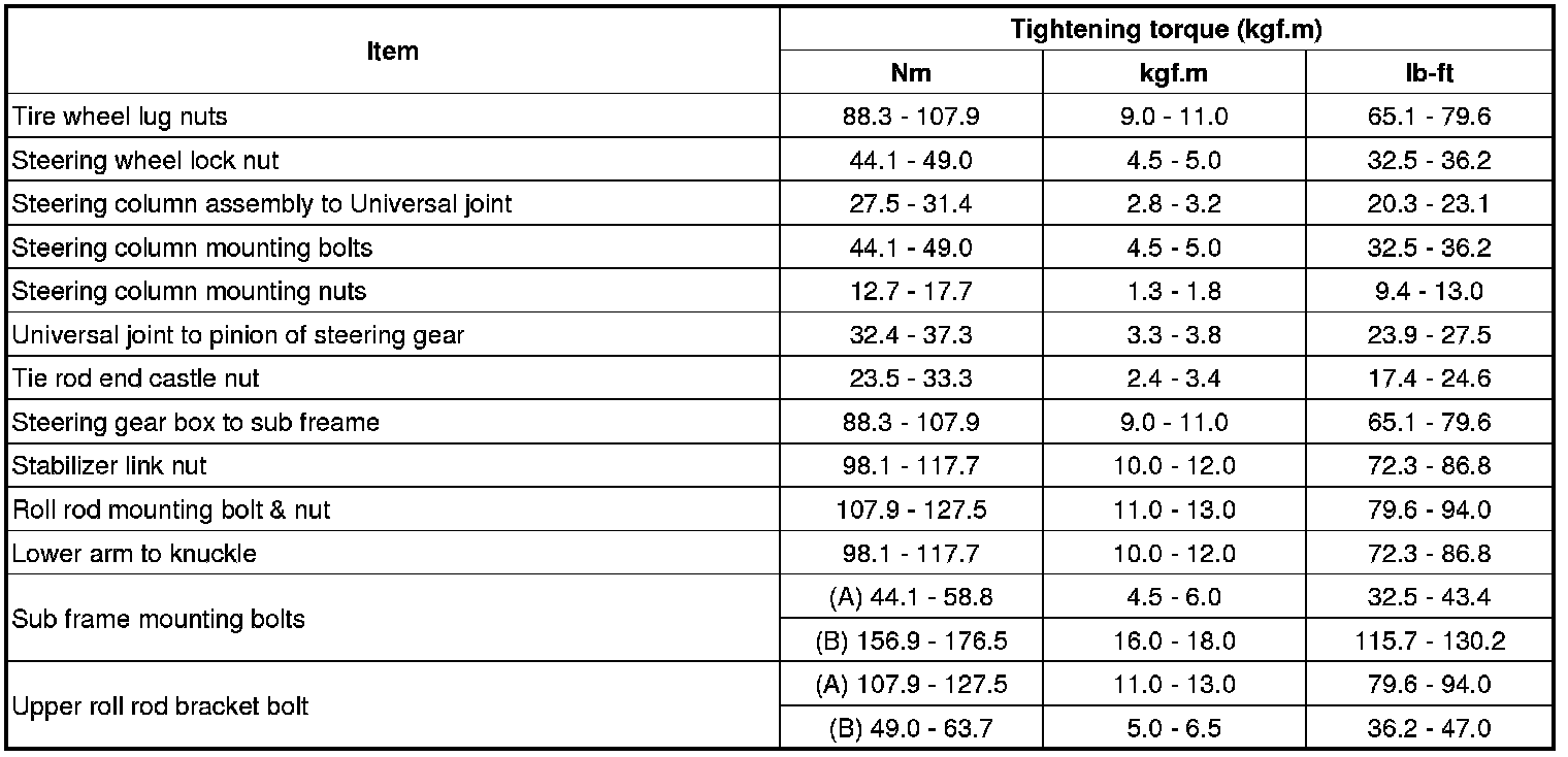 Tightening Torques