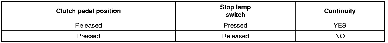 If the continuity is not as specified, replace the stop lamp switch.