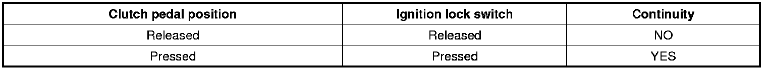 If there is difference between what tested and the table above, replace the ignition lock switch with a new one.