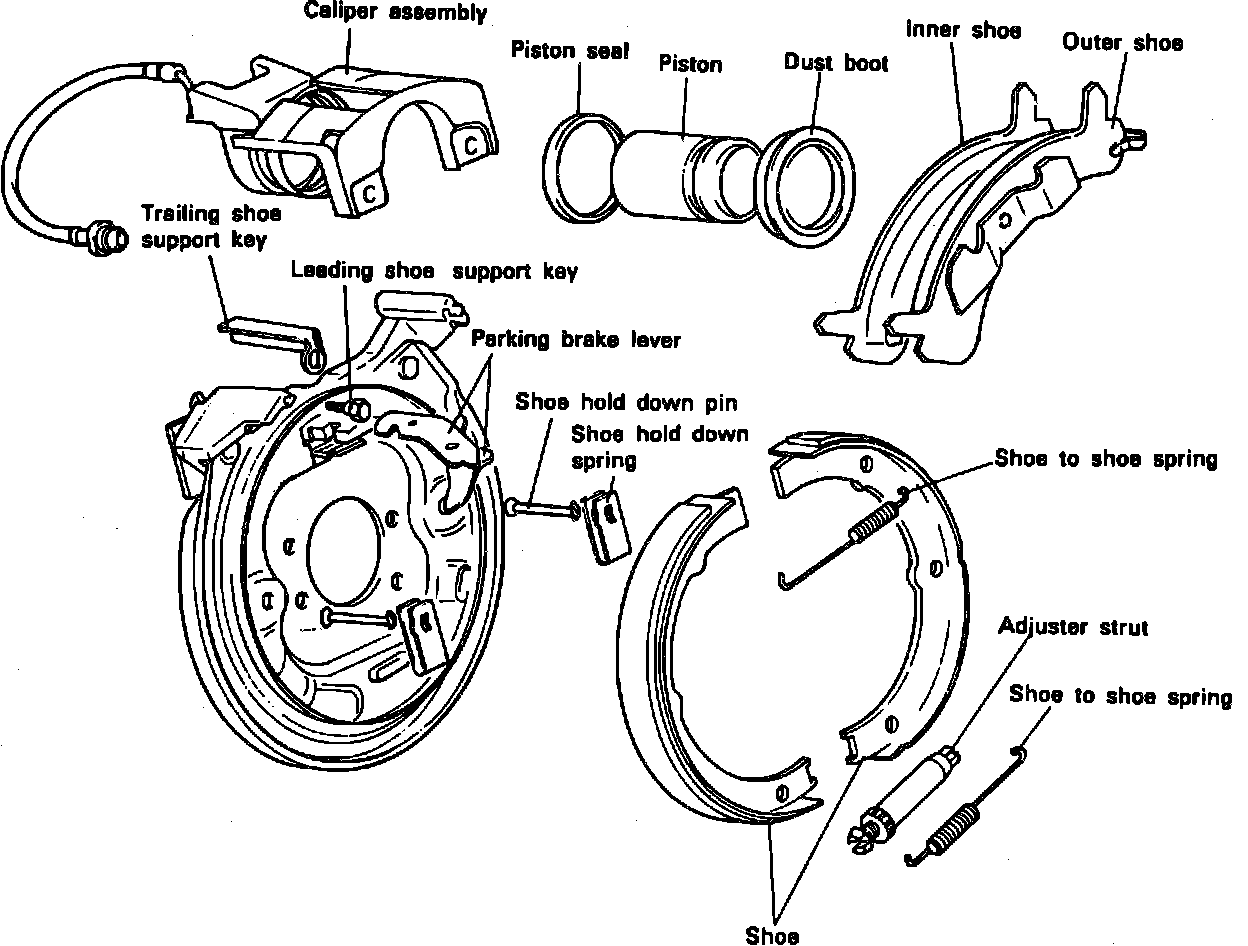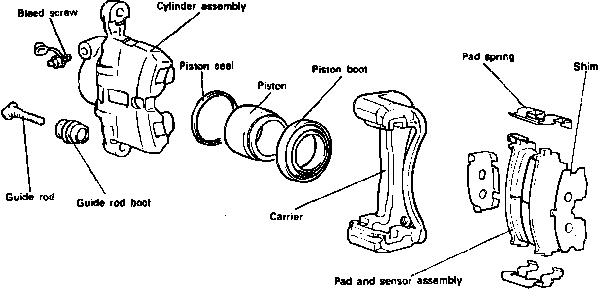 7. Reverse procedure to install. Apply brake fluid to piston seal and sliding piston parts.