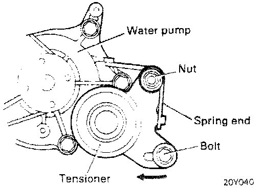 (8) Move tensioner fully toward water pump and temporarily secure tensioner.