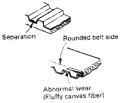 1. Closely inspect the belt. If following flaws are evident replace the belt with a new one.