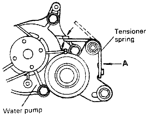 11. Install end "B" of spring to predetermined position of water pump.