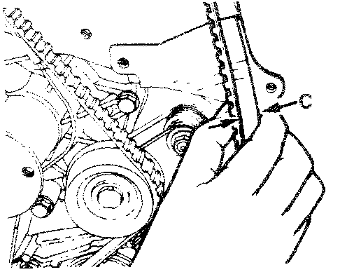 1. Install crankshaft sprocket "B" into crankshaft.