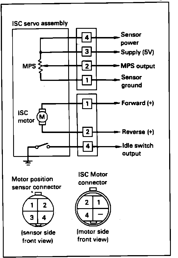 To test the Motor Position Sensor, attached to the Idle Speed Control (ISC) servo (mounted on the throttle body), proceed as follows.