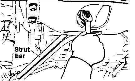 Caster on these vehicles generally requires no adjustment. However, on 1989 Excel models, slight adjustments can be made by turning the adjusting nut on the strut bar, Fig. 1, clockwise or counterclockwise as required.